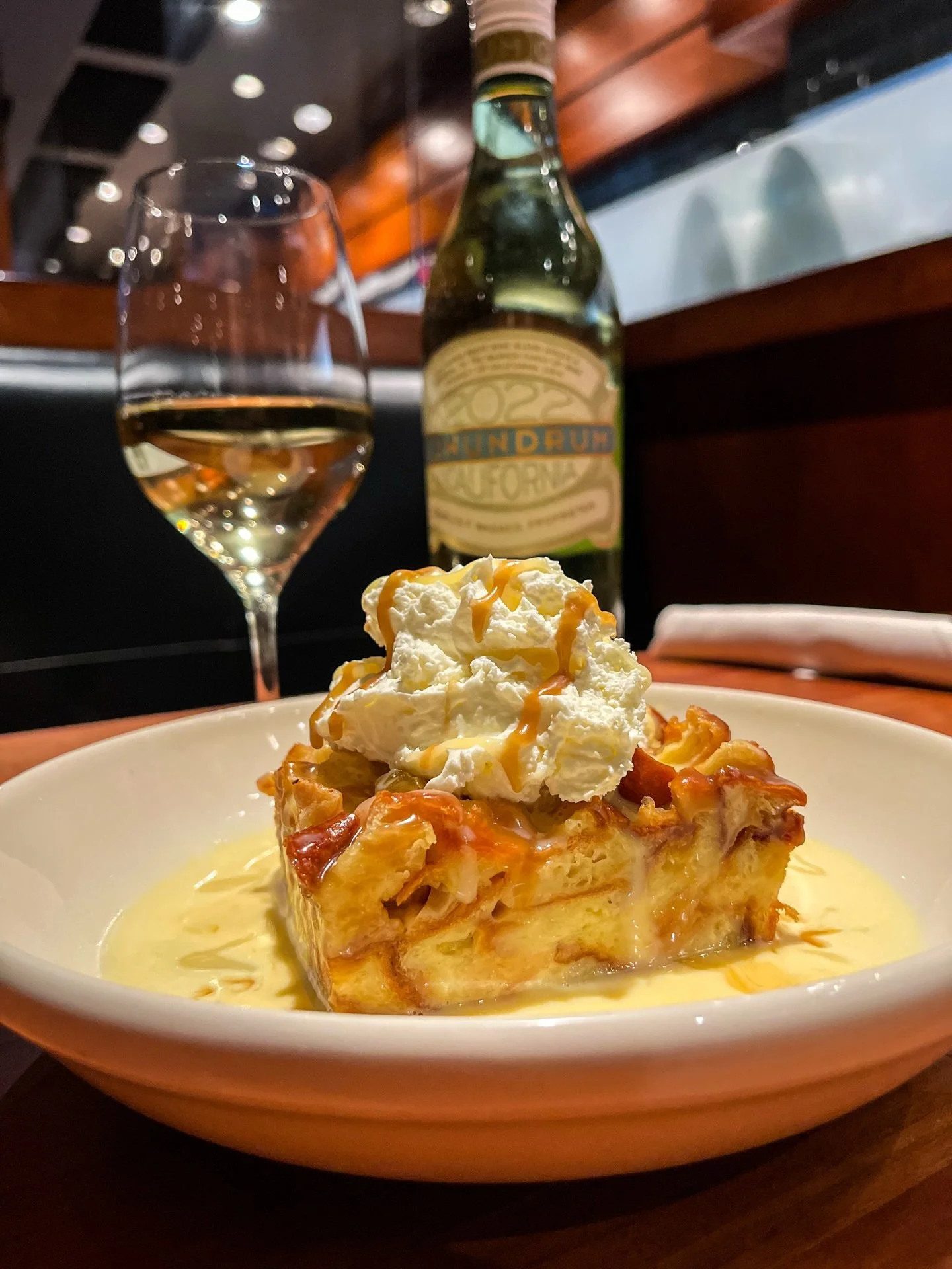 Served with creme anglaise & a graham cracker walnut crust. Topped with whipped cream & caramel sauce