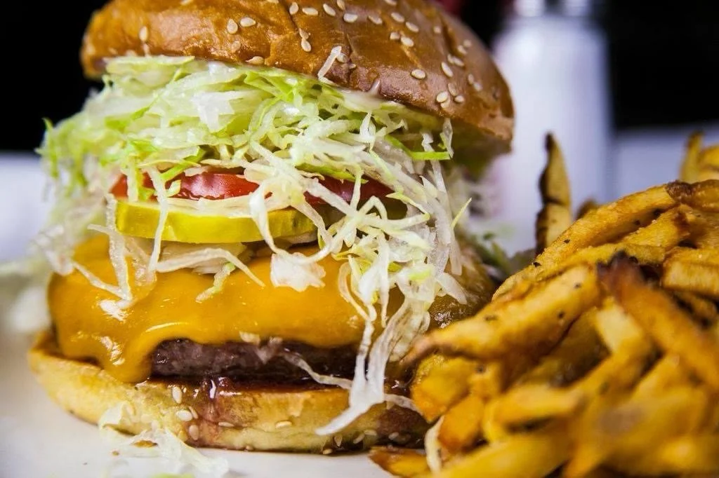 WCG Cheeseburger, BBQ Bacon Burger & Maytag Burger served with fresh-cut fries